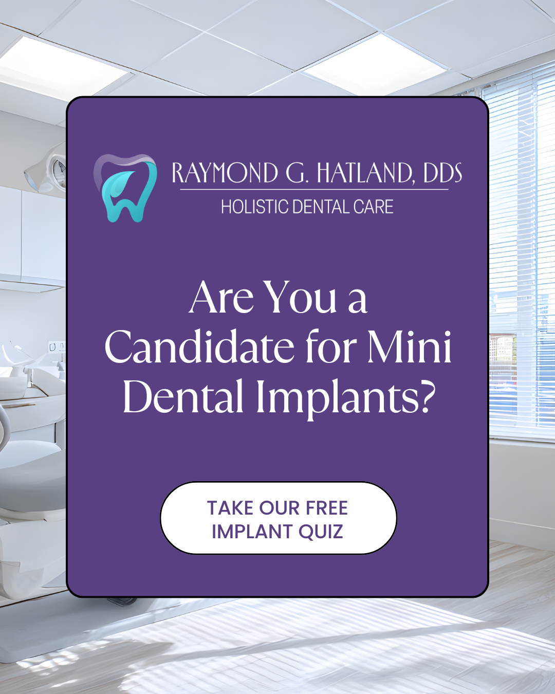 At Raymond G. Hatland, DDS, we offer mini dental implants as a gentle, holistic alternative to traditional implants. Unlike conventional implants that often require surgery, Dr. Hatland places mini implants using a minimally invasive, non-surgical technique. That means less stress on your body, a faster recovery, and very little post-op discomfort.